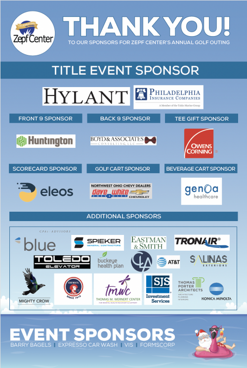 This year’s event was successful thanks to each golfer, Zepf Center volunteer, and supportive community member. Special thanks to our 2024 Golf Outing Committee and our 2024 Sponsors: