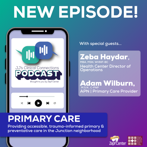 Joining the conversation are two passionate healthcare leaders—Health Center Director Zeba Haydar and Primary Care Provider Adam Wilburn. Over the past two years, these individuals have led the Primary Care team, connected with countless community partners, and relentlessly advocated for accessible healthcare in our community. Plus, they did all of this while running the clinic and providing excellent care to clients!